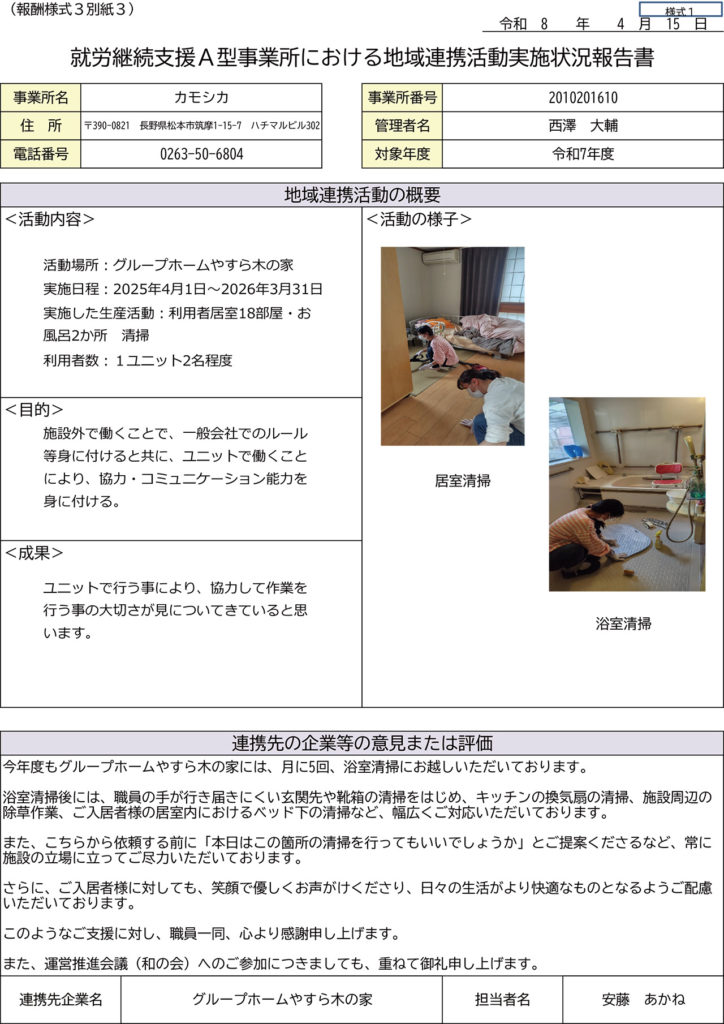 就労継続支援A型事業所における地域連携活動実施状況報告書